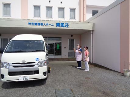 正面玄関にお知らせを掲示 介護職員は1人1本アルコールを所持