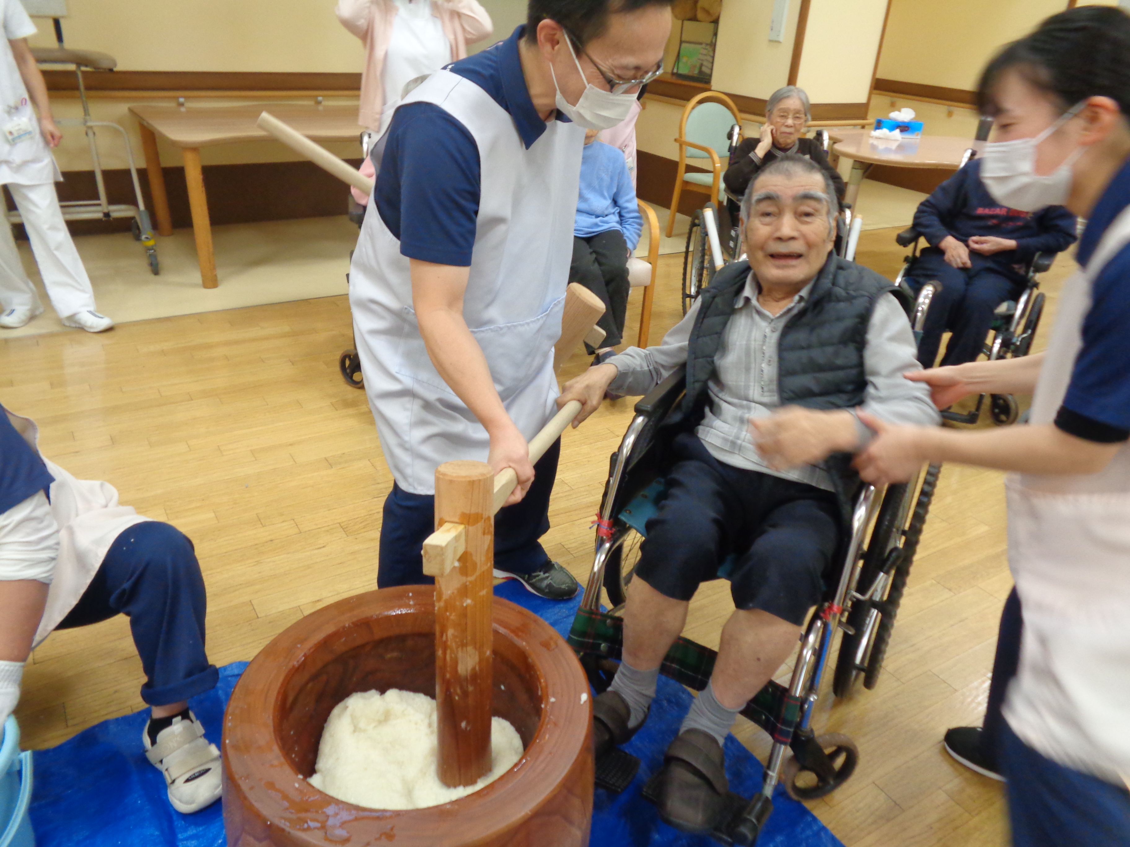 みんなで一緒にもちをつきます୧(⑅˃ᗜ˂⑅)୨ 「よいしょー!よいしょー!」