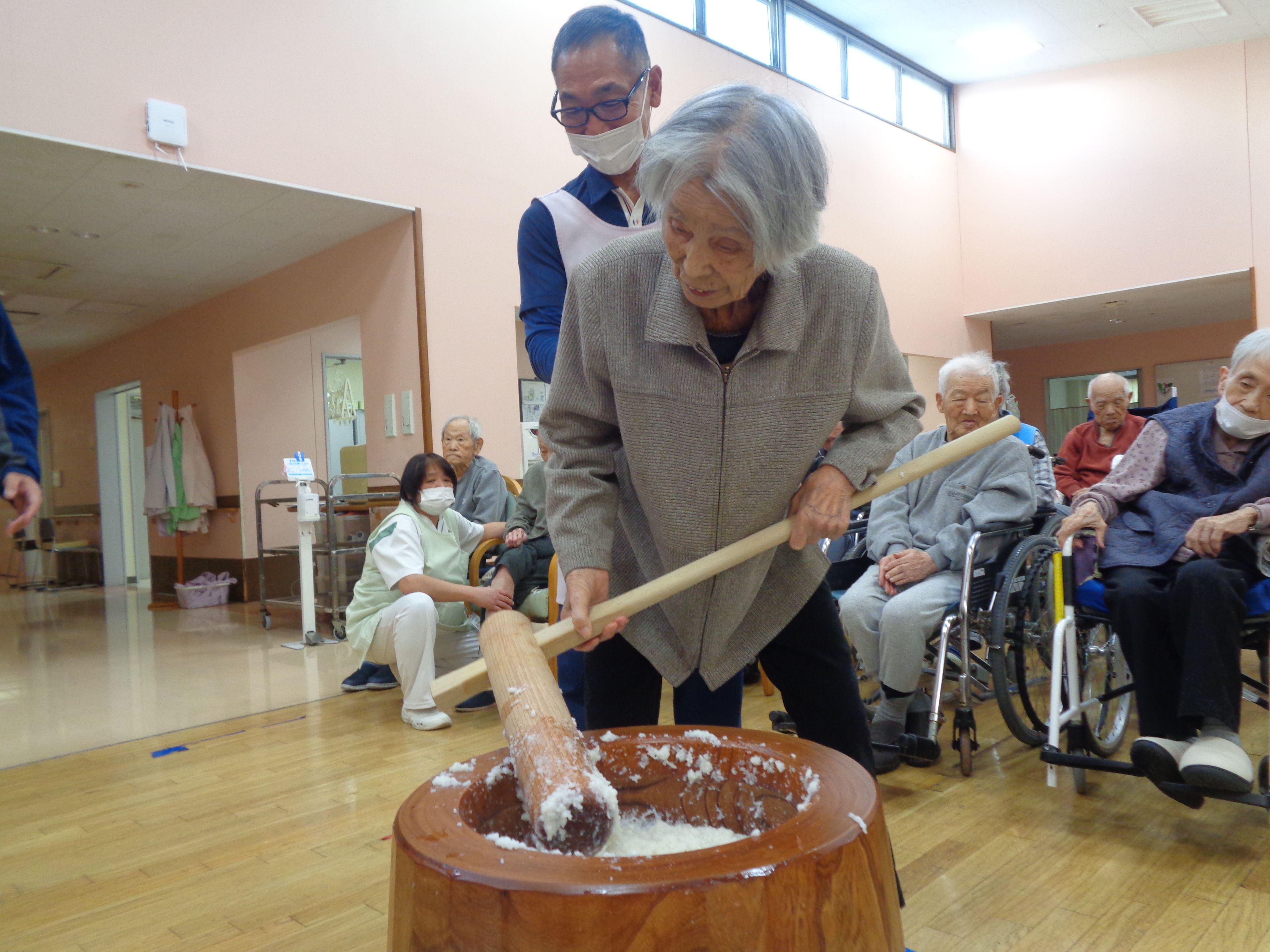 もち米をうすに入れてつぶしていきます((*p'∀'q))