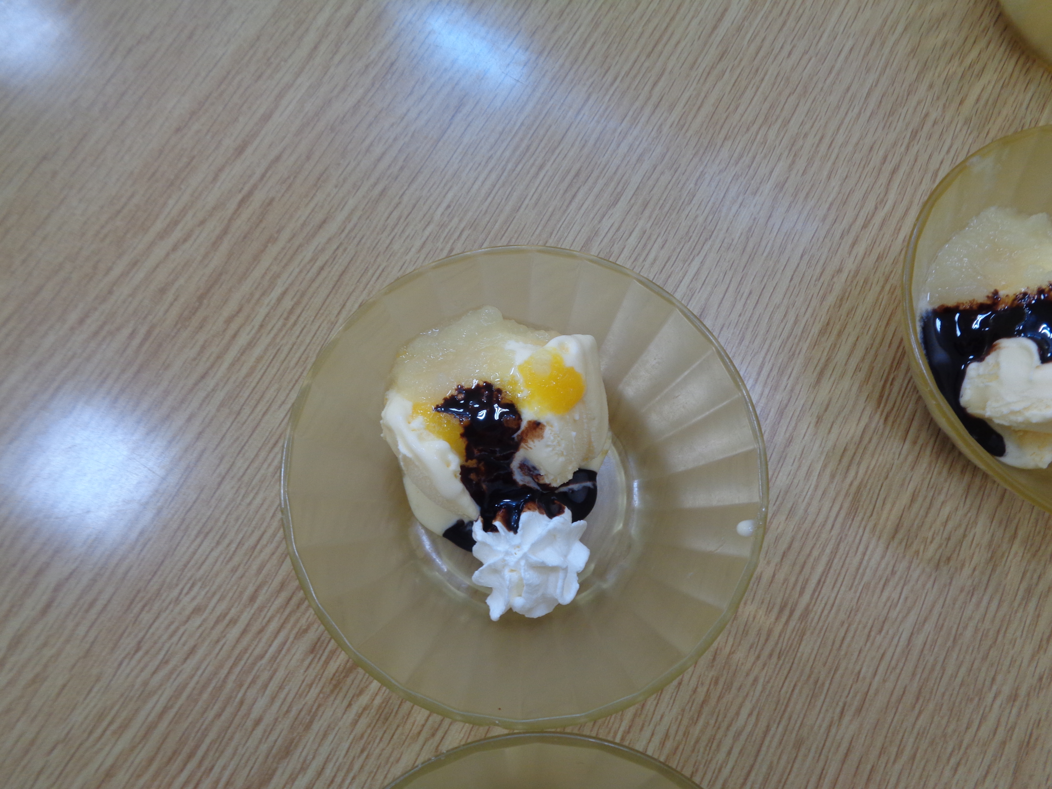 材料を切り、盛り付けて、蜜をかけて…(●ˇ∀ˇ●)