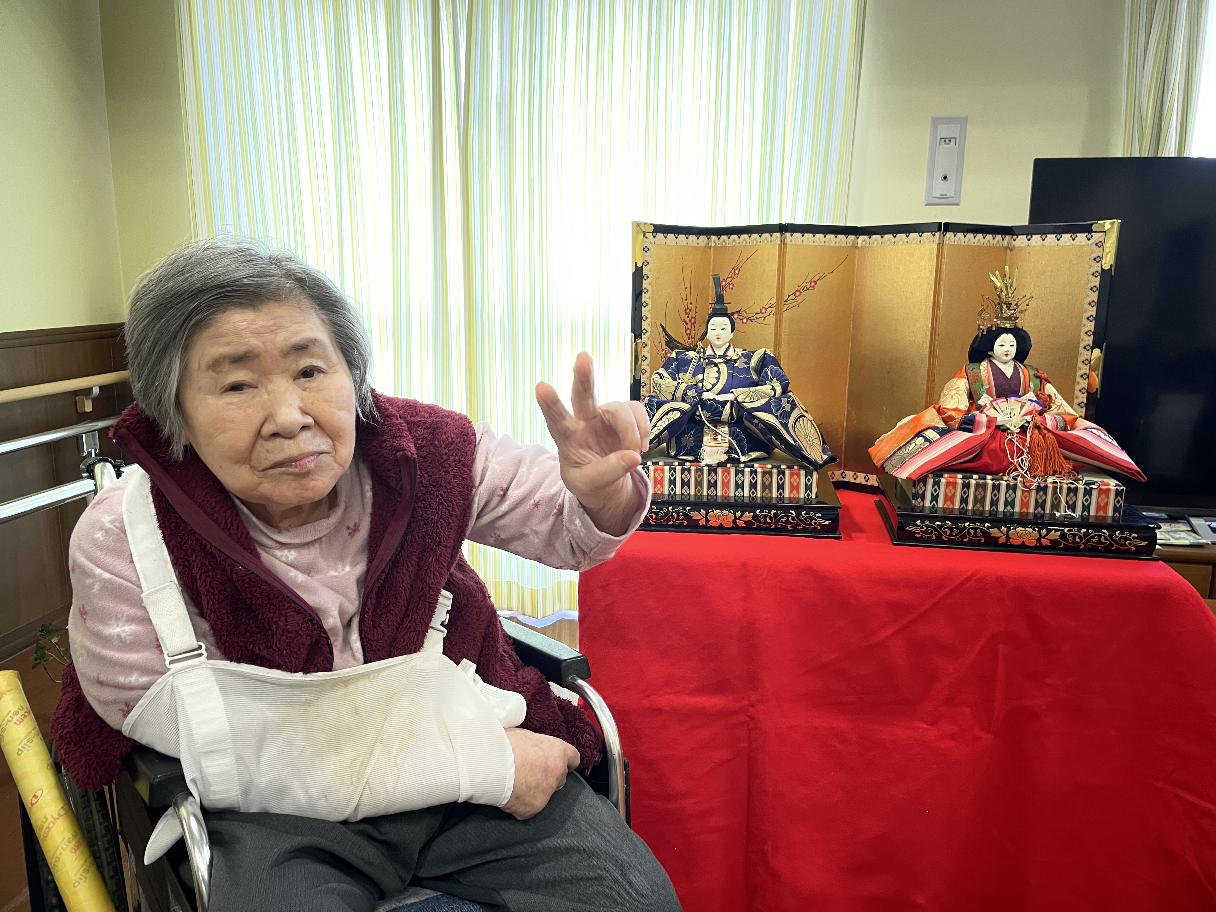 松里館では「7段飾りのお雛様」と一緒にお祝いをしました。