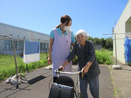5月25日に緊急事態宣言が解除され、旭市内での感染者が発生していないことから7月10日より正面玄関先での青空面会(屋外での面会)を受付けさせていただいております。