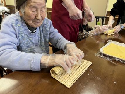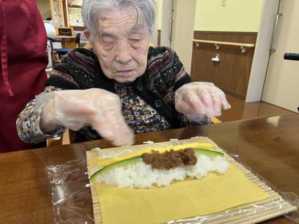 巻きすに具材をのせて、恵方巻を作ります(*'▽')♪