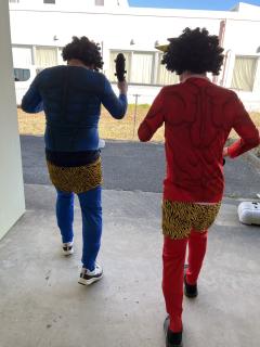 赤オニと青オニに豆を投げます