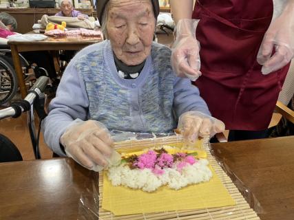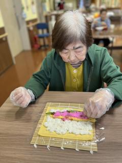 巻きすに具材をのせて、恵方巻を作ります(*'▽')♪